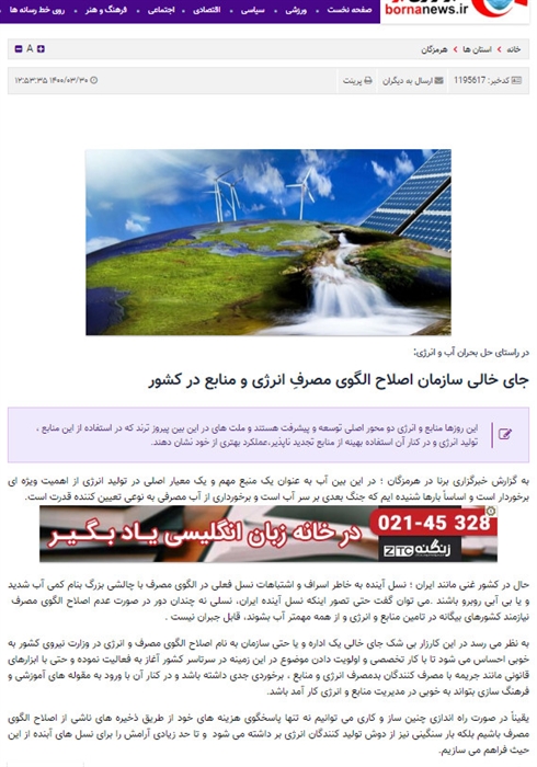 عنوان جای خالی سازمان اصلاح الگوی مصرفِ انرژی و منابع در کشور/برنا
