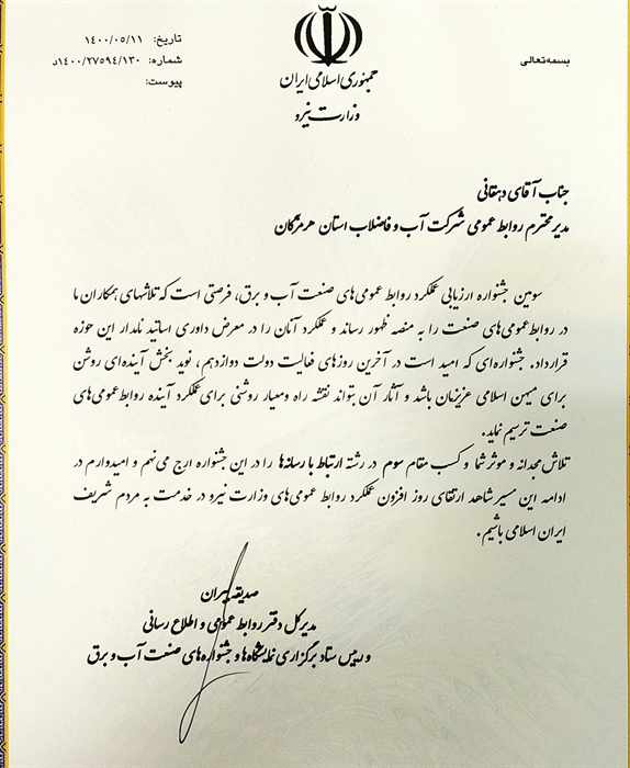 كسب مقام سوم ارتباط با رسانه ها در جشنواره ارزيابي عملكرد روابط عمومي