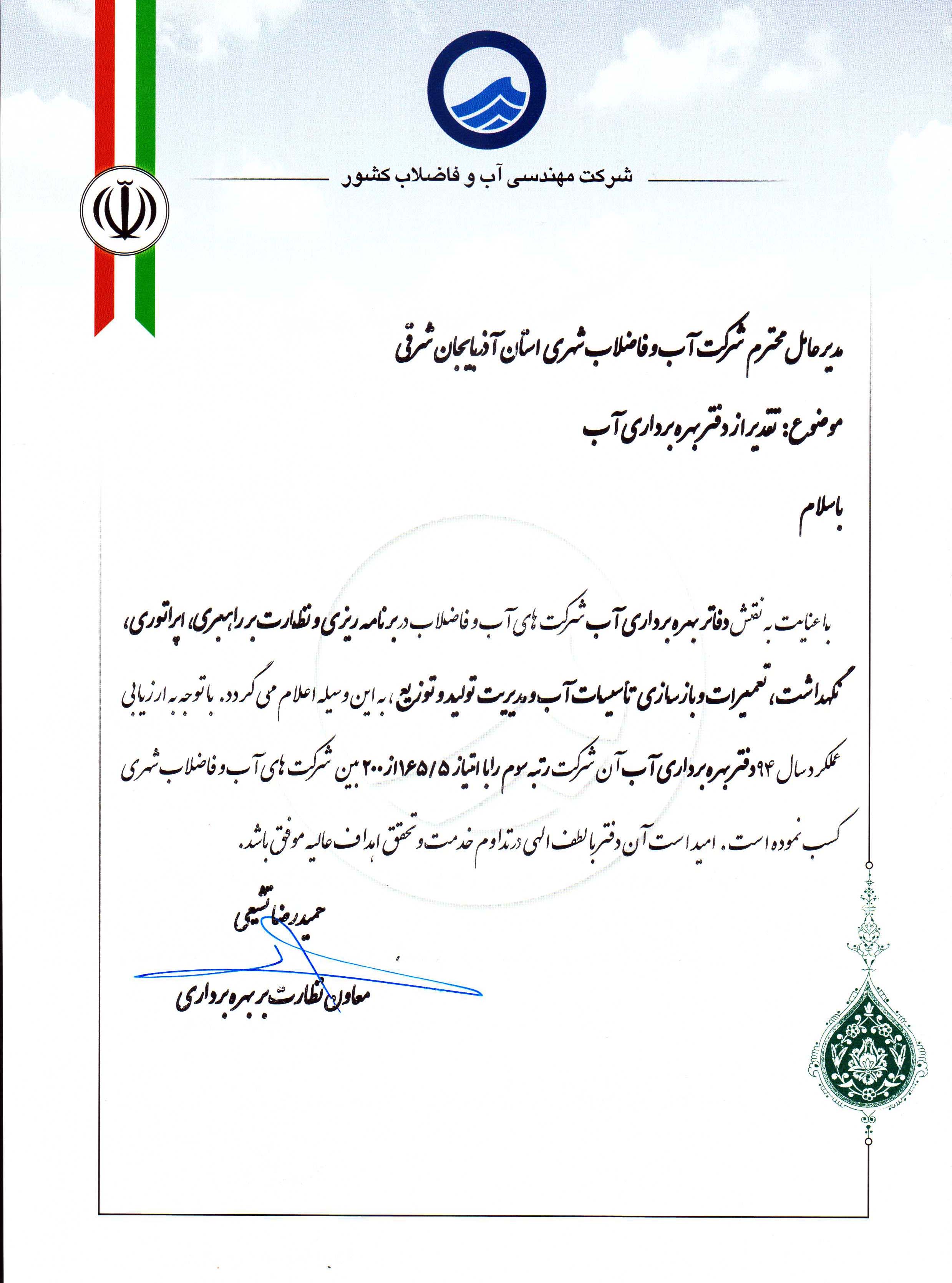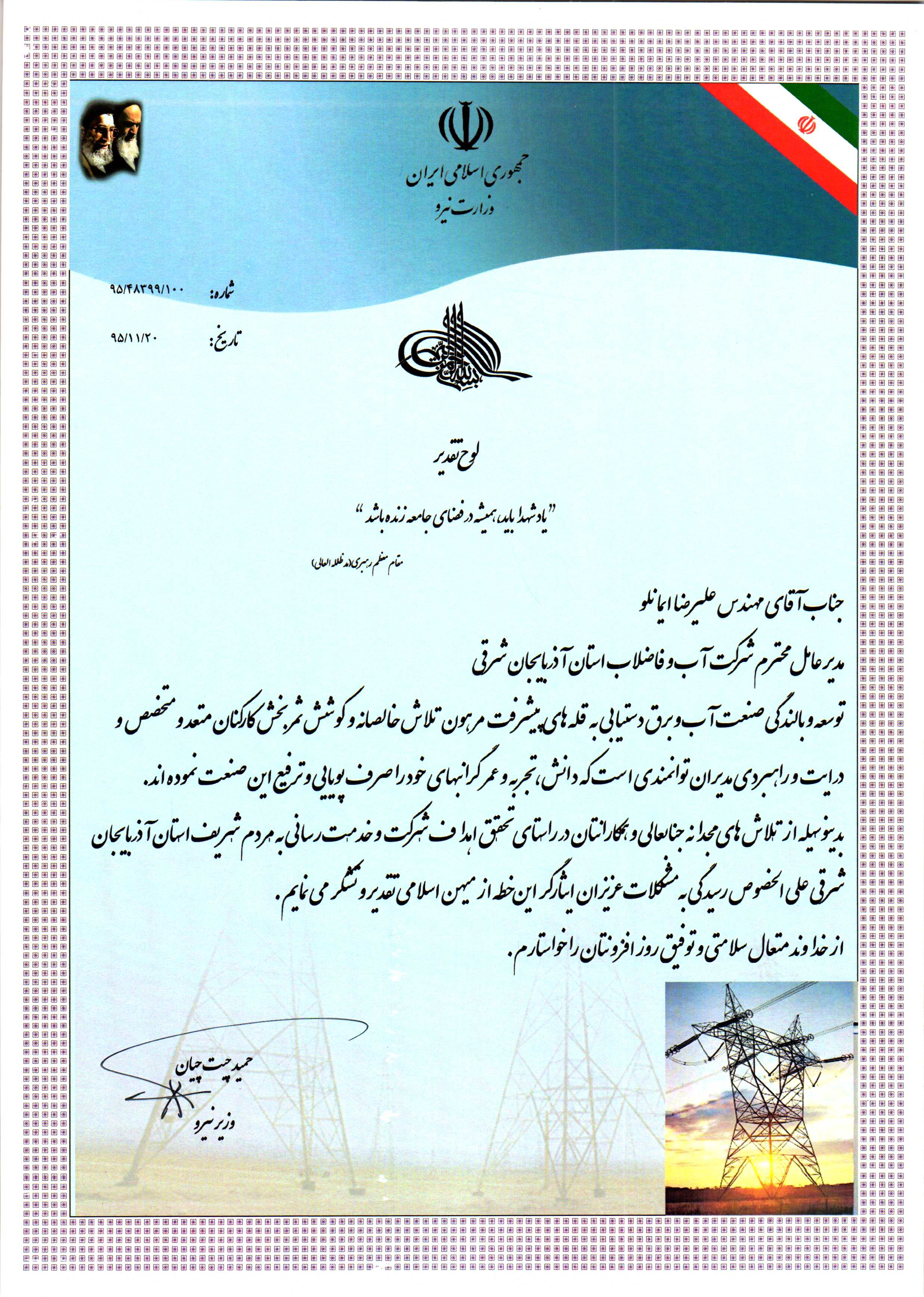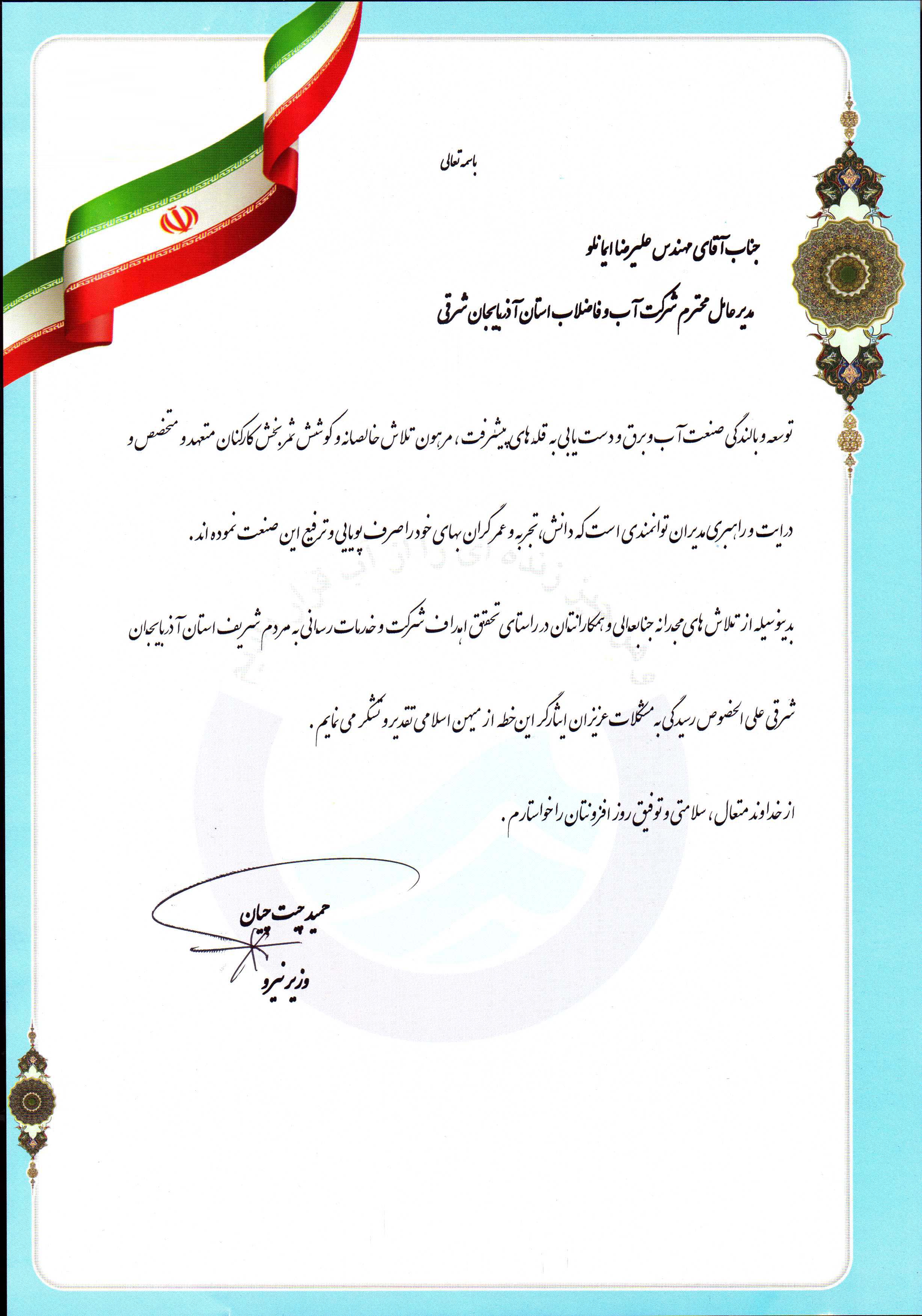 قدردانی وزیر نیرو از مدیر عامل-1 |
