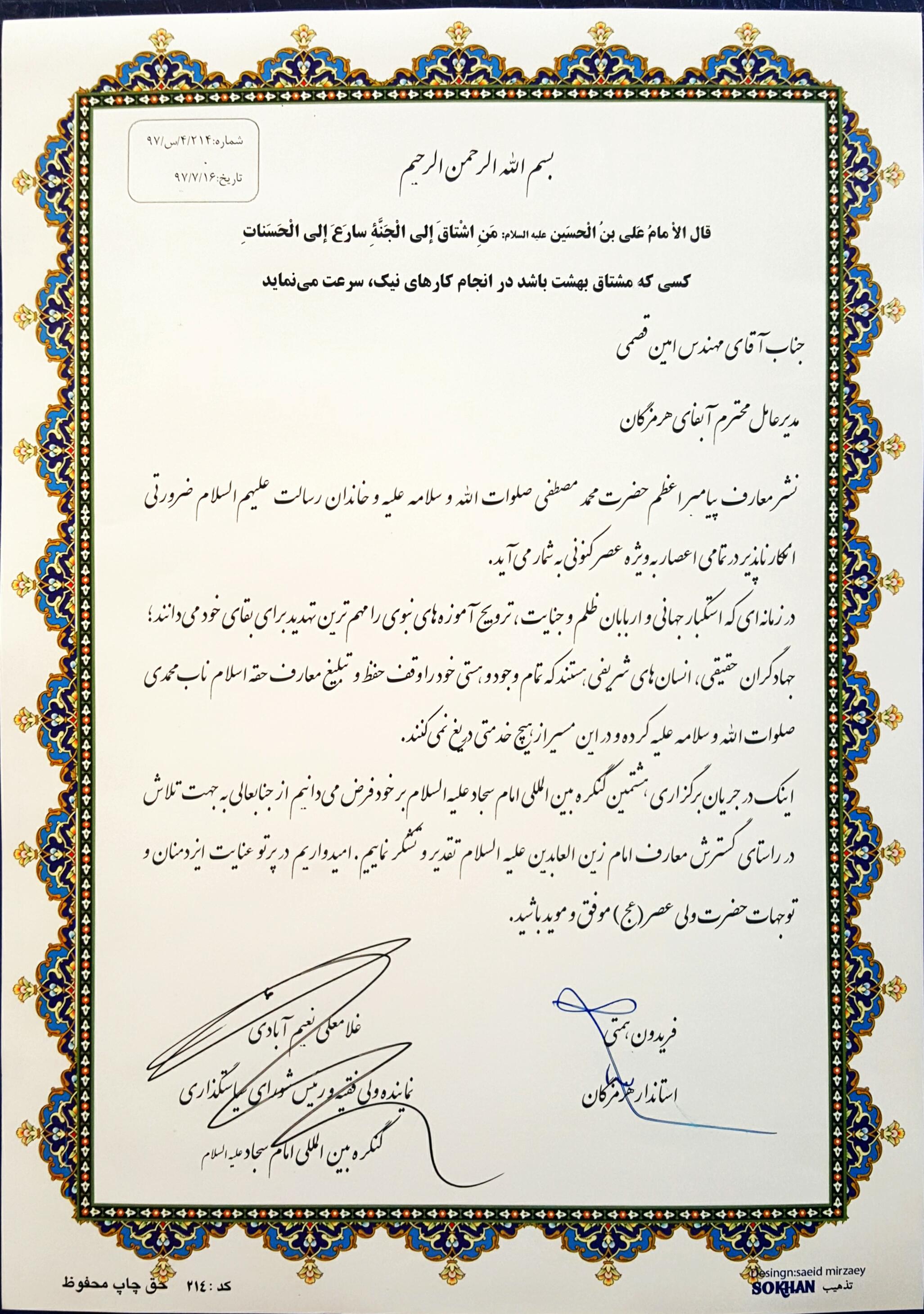 مدیر حراست /کنگره بین المللی امام سجاد |