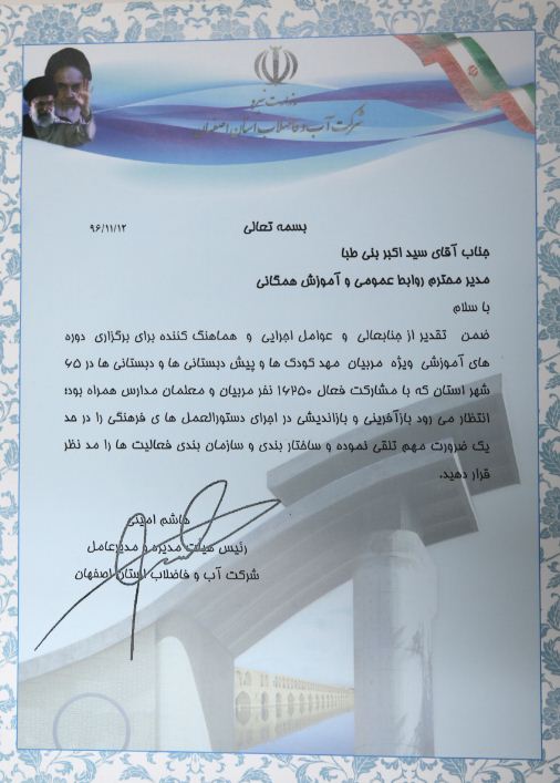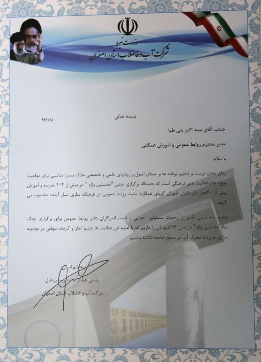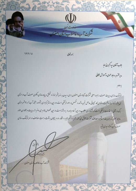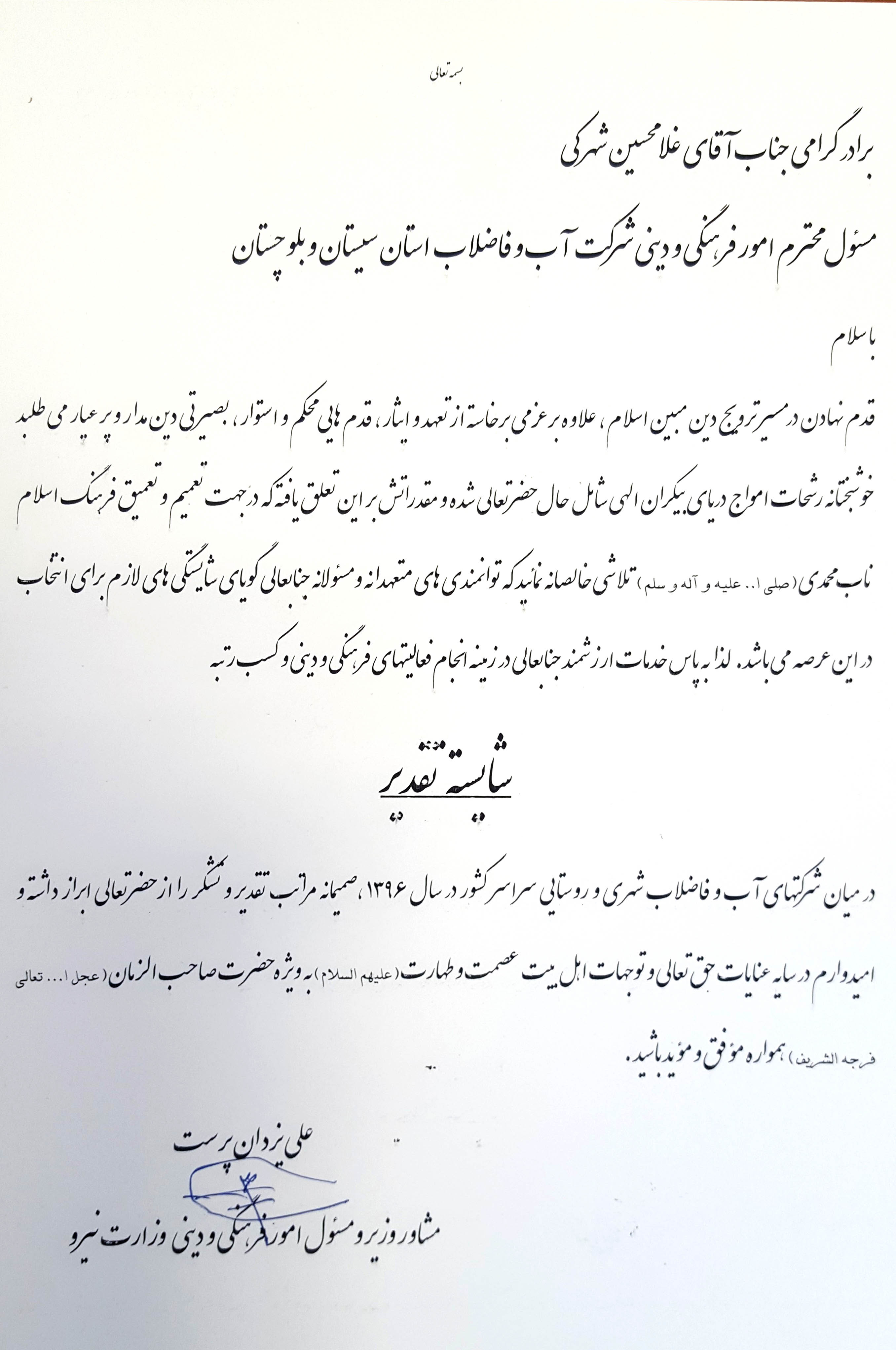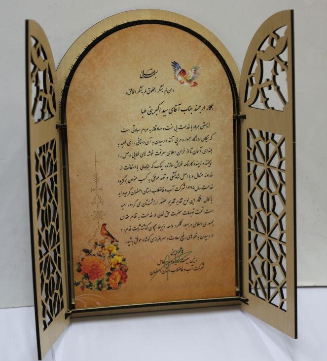لوح تقدیر دفتر امور فرهنگی و دینی |