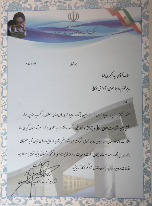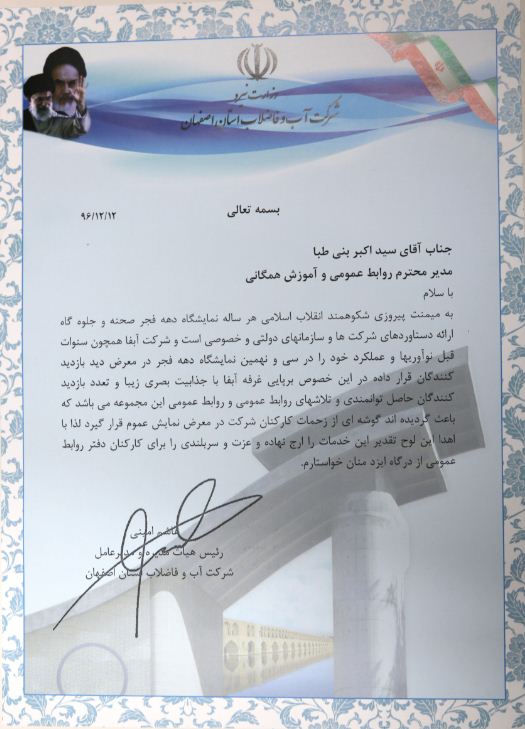لوح سپاس برای شفافیت اطلاع رسانی و پاسخگویی در نمایشگاه هفته دولت |