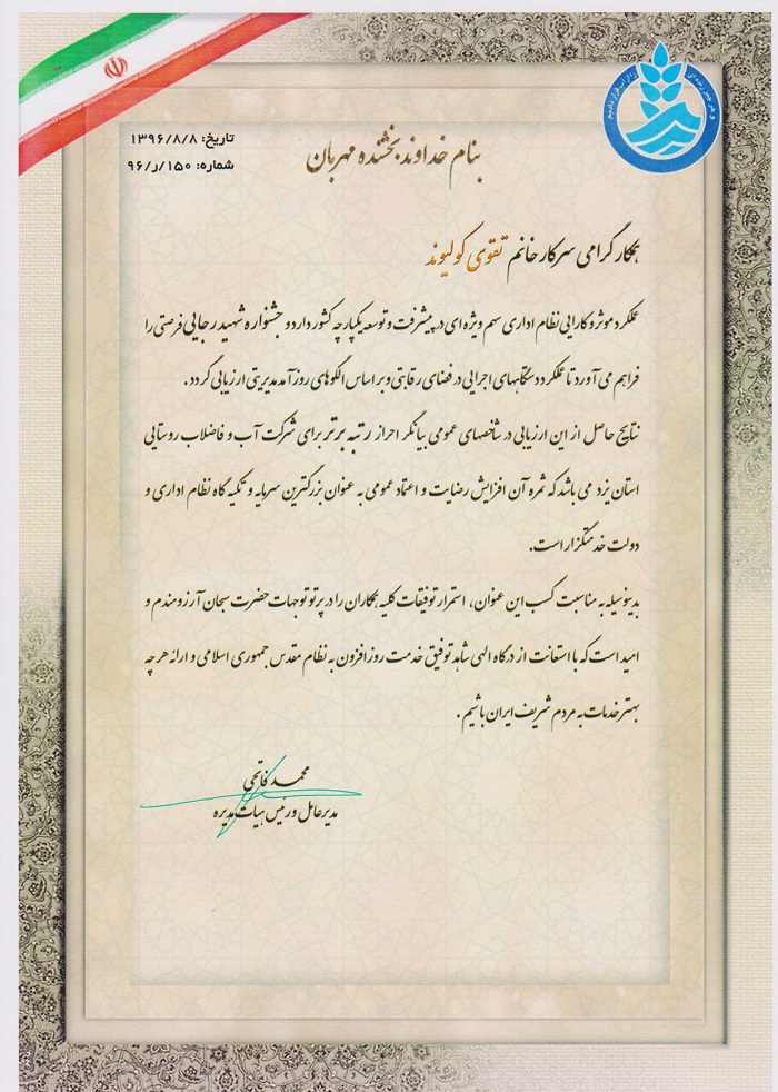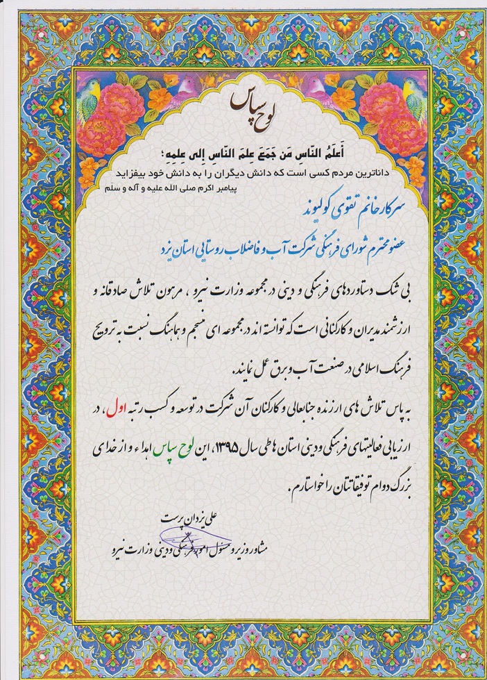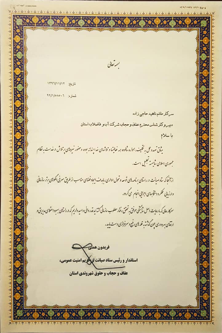 تقدیر از سوی ستاد حجاب و عفاف |