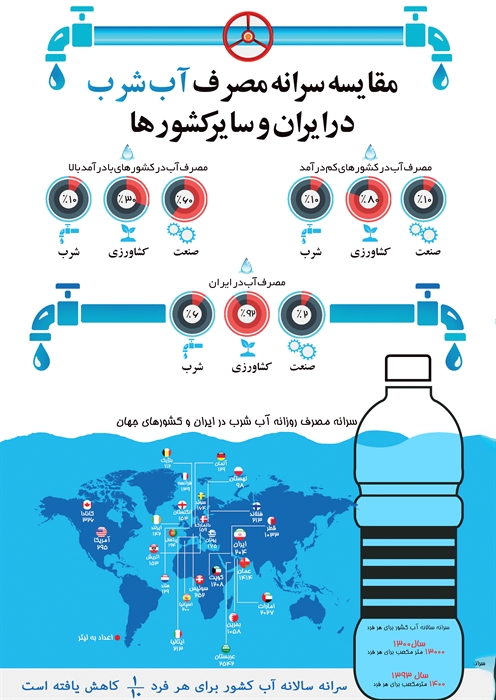 • مقایسه سرانه مصرف آب ایران با سایر کشورها